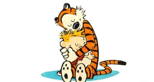 O receio de que me descobrissem numa situação dessas e ridicularizassem sobrepôs-se àquela necessidade. Nunca me atrevi. Com o passar dos anos, o assunto foi esquecido. Mas quando, já com mais de vinte anos, comecei a ler as tiras de Calvin & Hobbes na imprensa, algo recalcado manifestou-se no meu interior. Fascinou-me que um menino se atrevesse a considerar um tigre de peluche o seu melhor amigo, que o ouvia, o compreendia, o aconselhava e, muitas vezes, o salvava dos seus fantasmas. O pormenor que mais me emocionou (algo que ainda hoje idolatro) foi o facto de o tigre confidente/protetor ser muito maior do que o miúdo. Porém, nas cenas em que a mãe ou o pai de Calvin falam com o filho, o tigre torna a ser de peluche, quatro vezes mais pequeno, e ocupa um lugar discreto no quadradinho (passa mesmo despercebido).